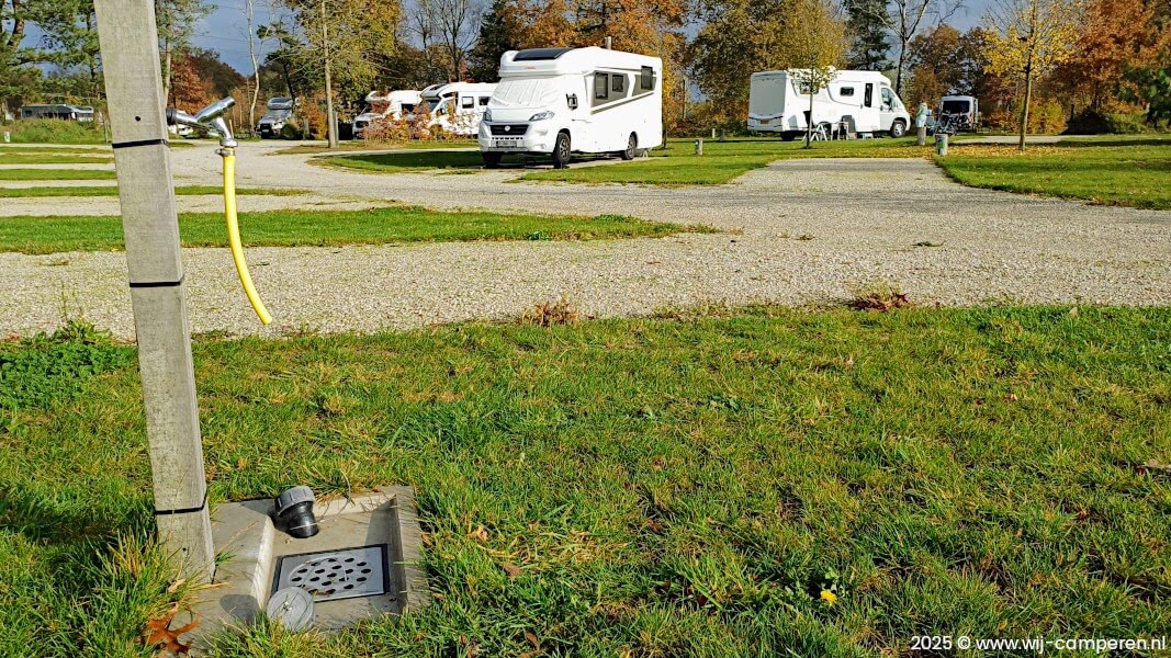 Aan de rand van het camperpark vind je de comfortplekken. Deze plekken hebben een eigen waterkraan en een afvoer voor het lozen van vuil water.
