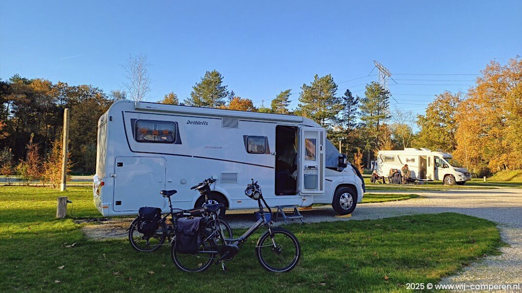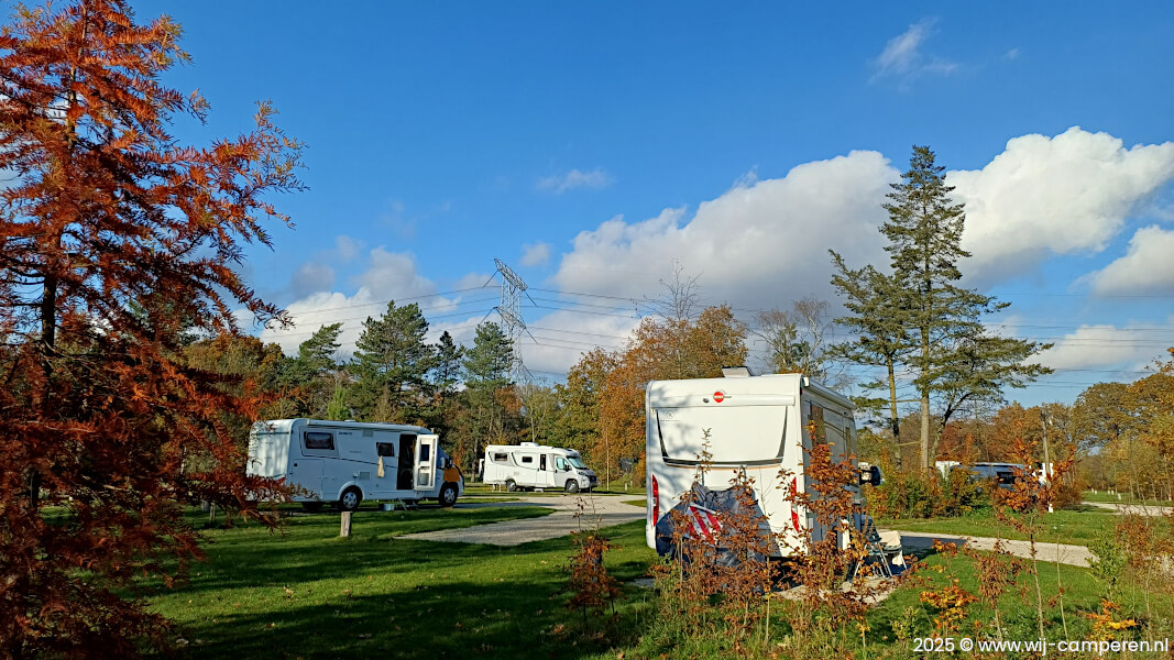 We parkeren onze camper voor de slagboom op de grote parkeerplaats. Lopend over het camperpark zoeken we een mooie plek uit en dat is best lastig. De keuze is reuze en we hebben een luxe probleem.