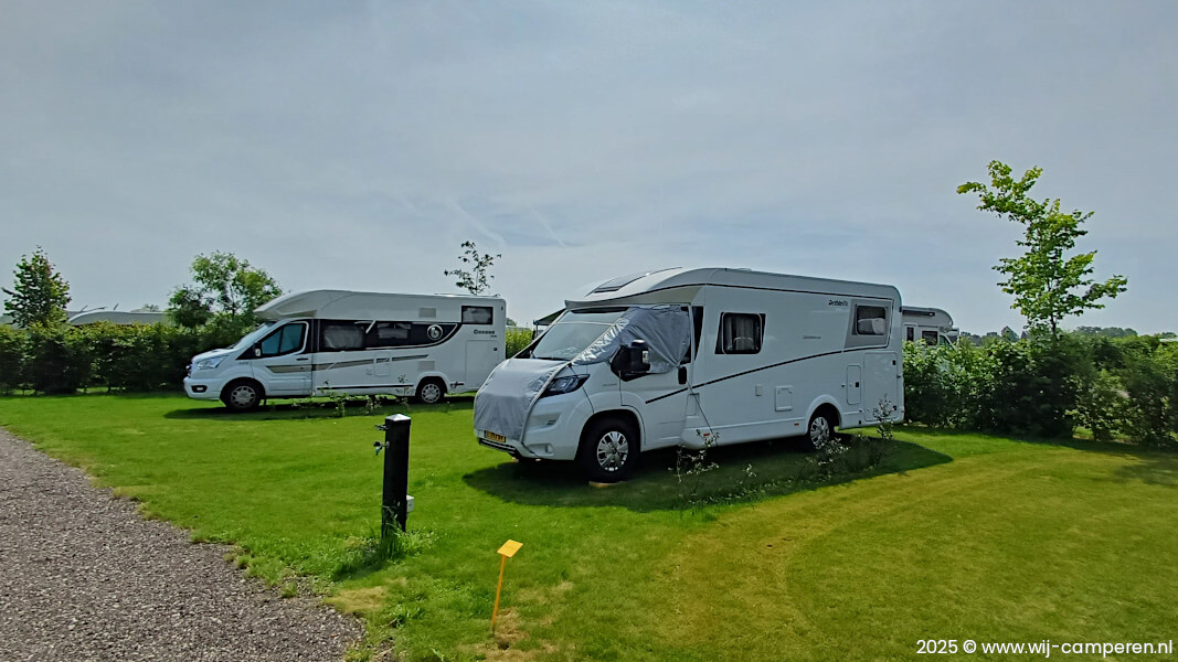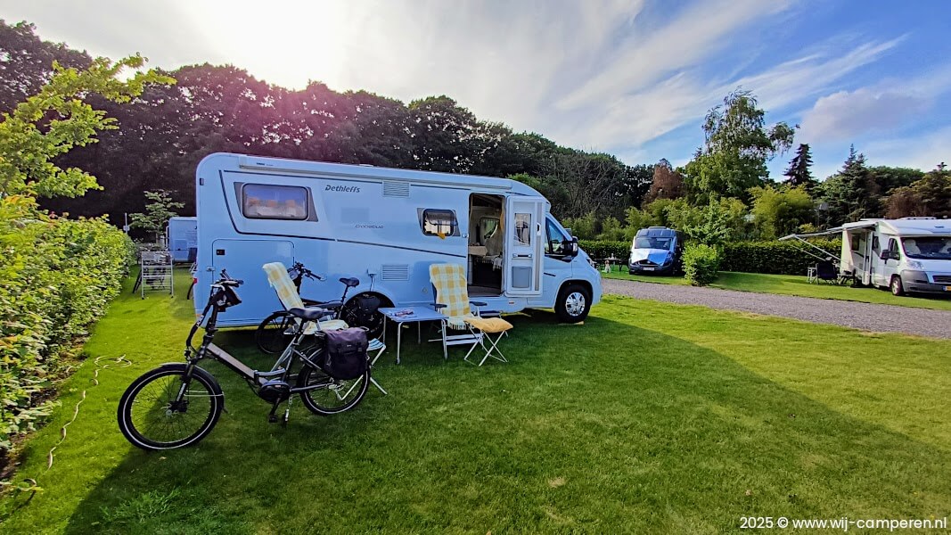 Het eerste dat ons opvalt zijn de enorm ruime plekken. Elke plek heeft een strakke grasmat voor de deur. Er is ruimte genoeg om je luifel uit te draaien en ook onze fietsen staan niet in de weg. De buren staan op gepaste afstand.