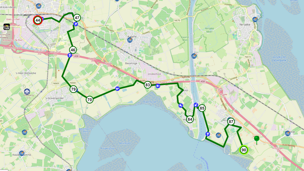 Met een grote omweg fiets je naar Goes