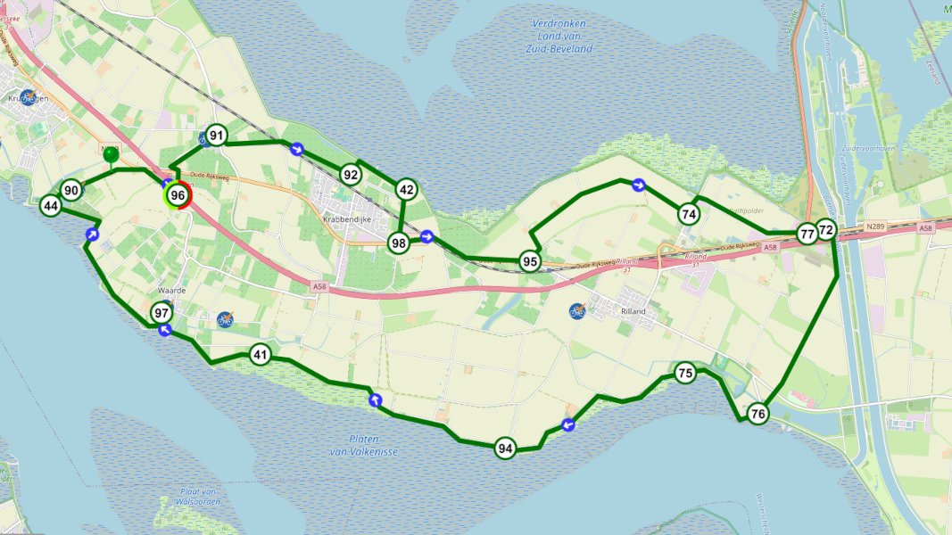 Via het dorpje Bath fiets je naar de Westerschelde. Er volgt een lang stuk (zeker niet saai) over de dijk met overal uitzicht over het water.